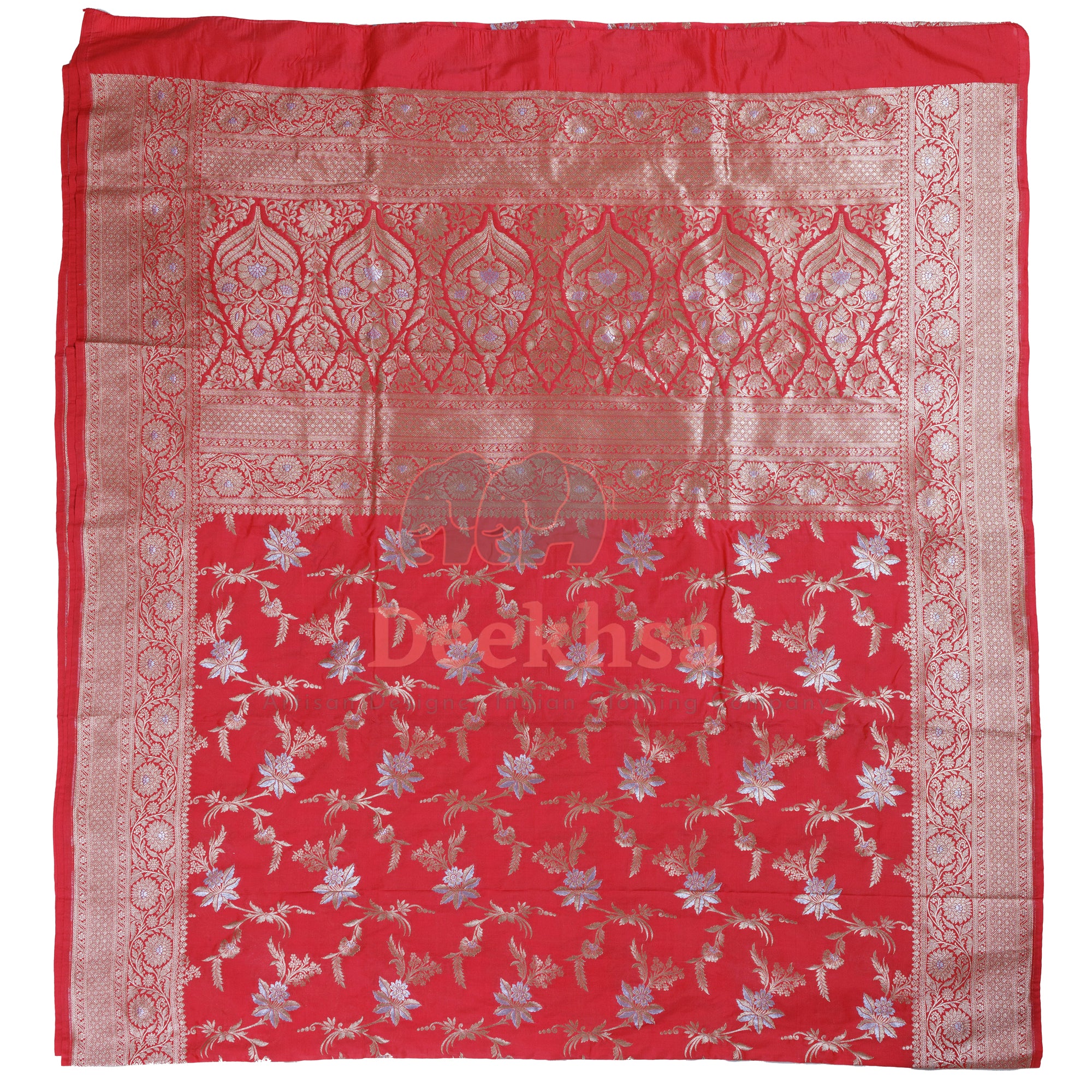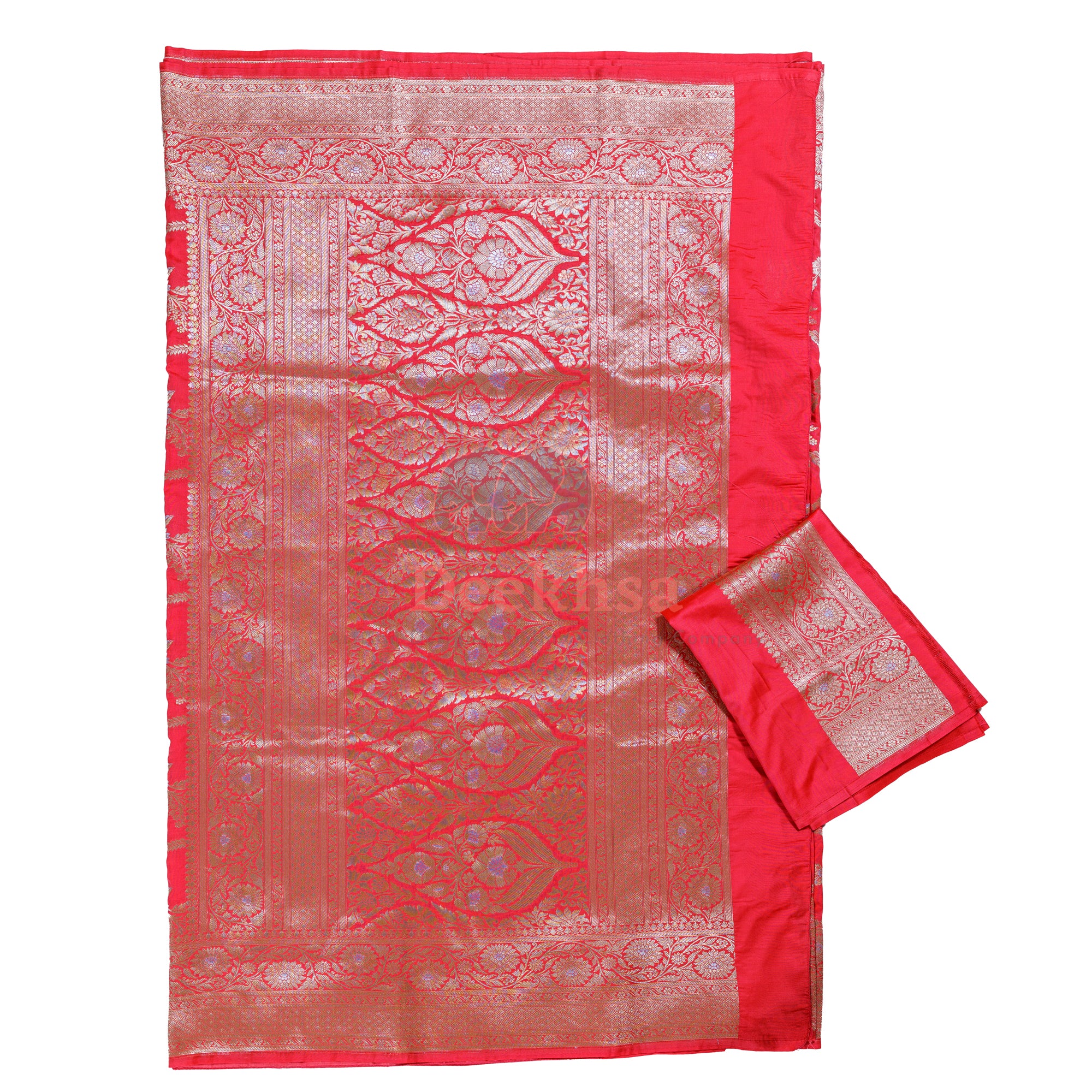 Opulent and timeless, this Banaras Katan Silk Jaal Saree is a true celebration of traditional craftsmanship. Woven from lustrous pure Katan silk, the saree features an elaborate all-over jaal design adorned with intricate floral and paisley motifs. Delicate Meena work adds subtle pops of color within the weave, enhancing the richness and depth of the pattern. With its luxurious texture and regal drape, this saree is a perfect choice for weddings and grand celebrations a heritage piece that beautifully blends elegance and artistry.