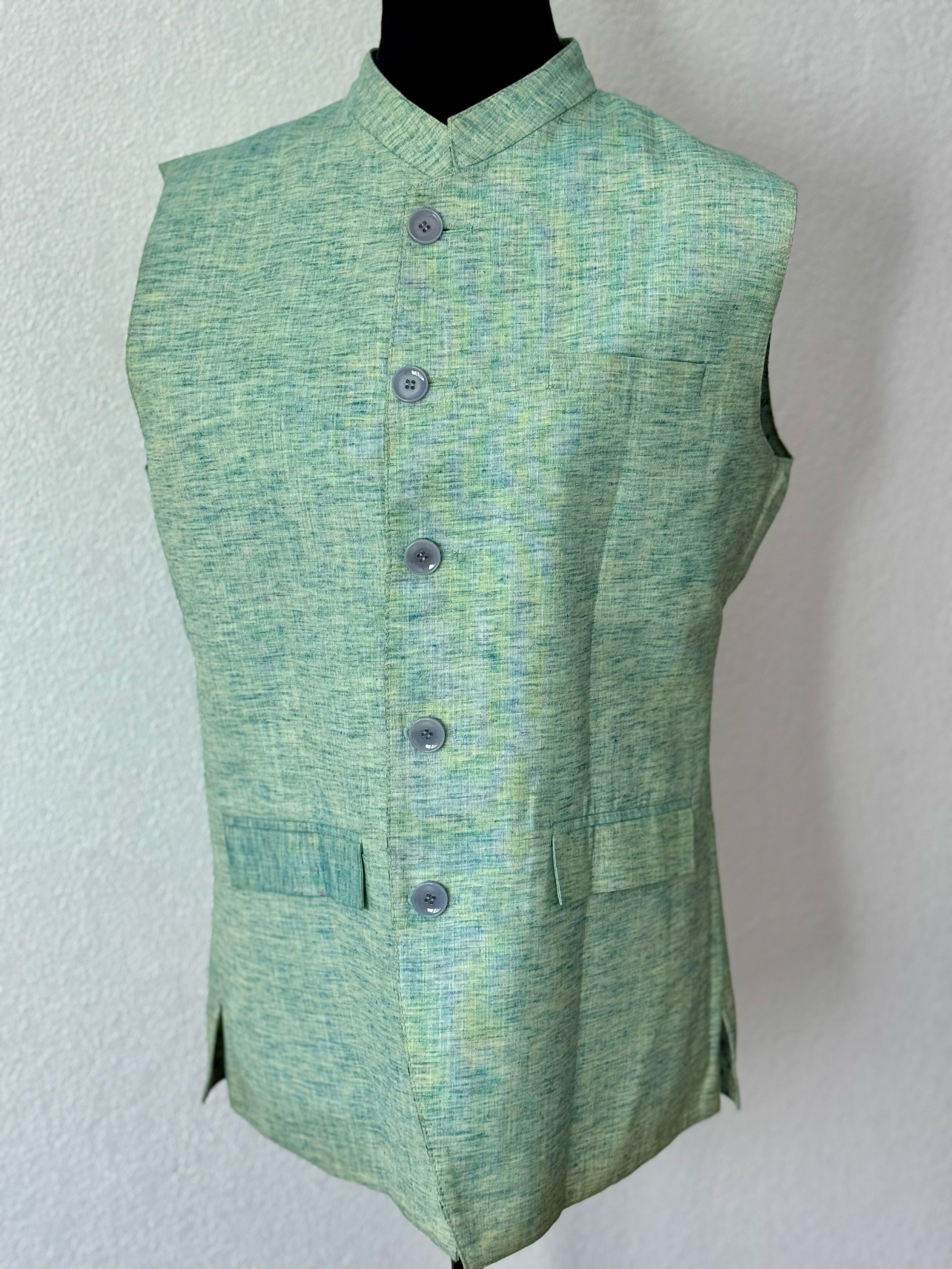Two looks, one jacket—double the style with our Reversible Bandi Jacket. Crafted for versatility, this jacket features two distinct designs or colorways in one elegant Nehru-style silhouette. Made from high-quality fabric such as silk or cotton, or linen blends, it offers a seamless transition from festive to formal. Thoughtfully tailored for comfort and sophistication, it pairs effortlessly with kurtas, shirts, or trousers—making it your go-to choice for weddings, celebrations, or elevated everyday wear.